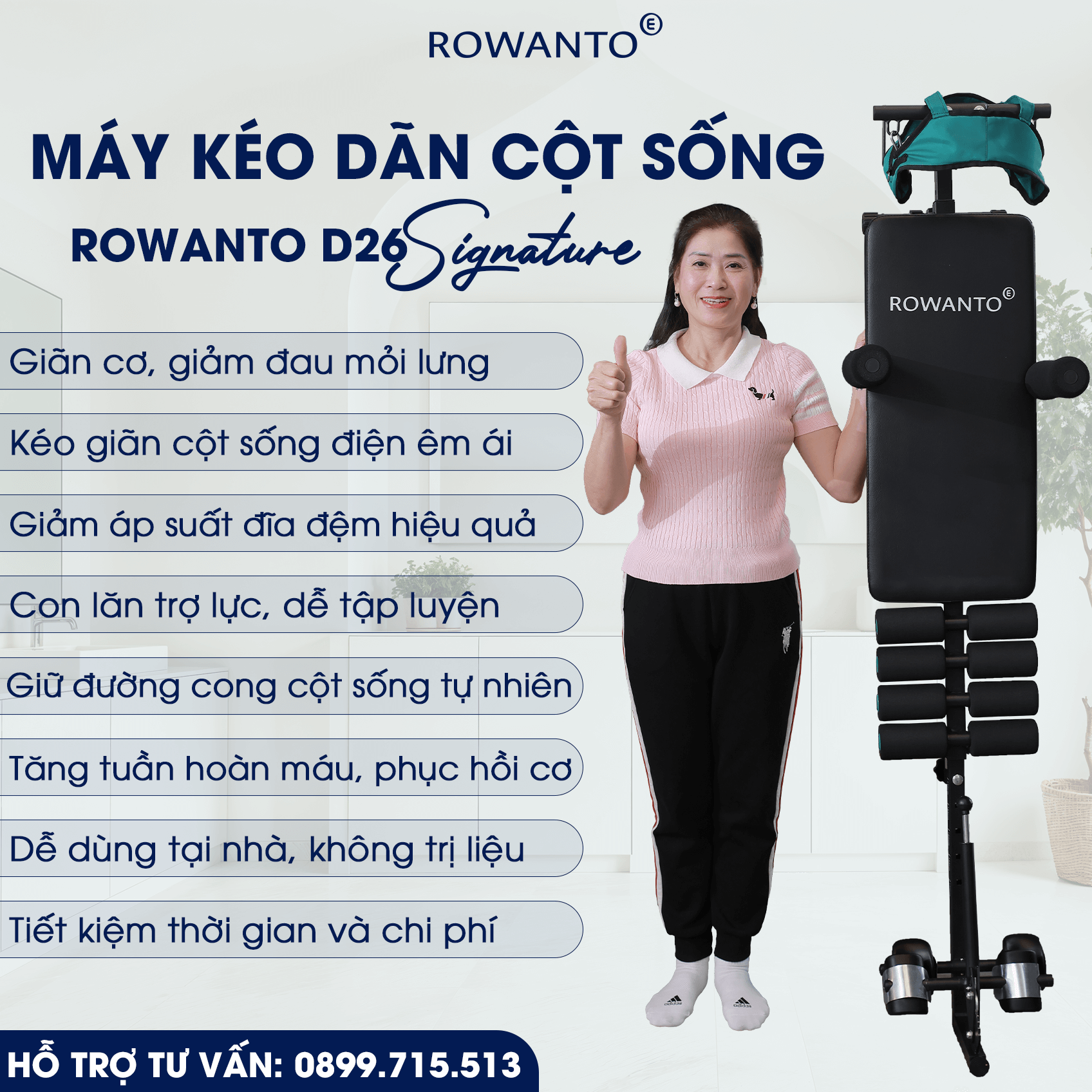 Không chỉ là một thiết bị tập luyện, Rowanto D26 là giải pháp chăm sóc cột sống toàn diện, giúp bạn giảm đau – phục hồi – phòng ngừa ngay tại nhà, an toàn và chủ động mỗi ngày.