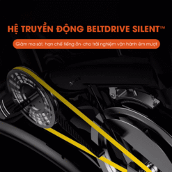 BeltDrive Silent™ sử dụng dây curoa cao su chịu lực cao, giúp xe vận hành êm mượt, hạn chế tiếng ồn, tăng tuổi thọ thiết bị. Người dùng có thể tập luyện mọi thời điểm trong ngày mà không ảnh hưởng tới sinh hoạt gia đình.